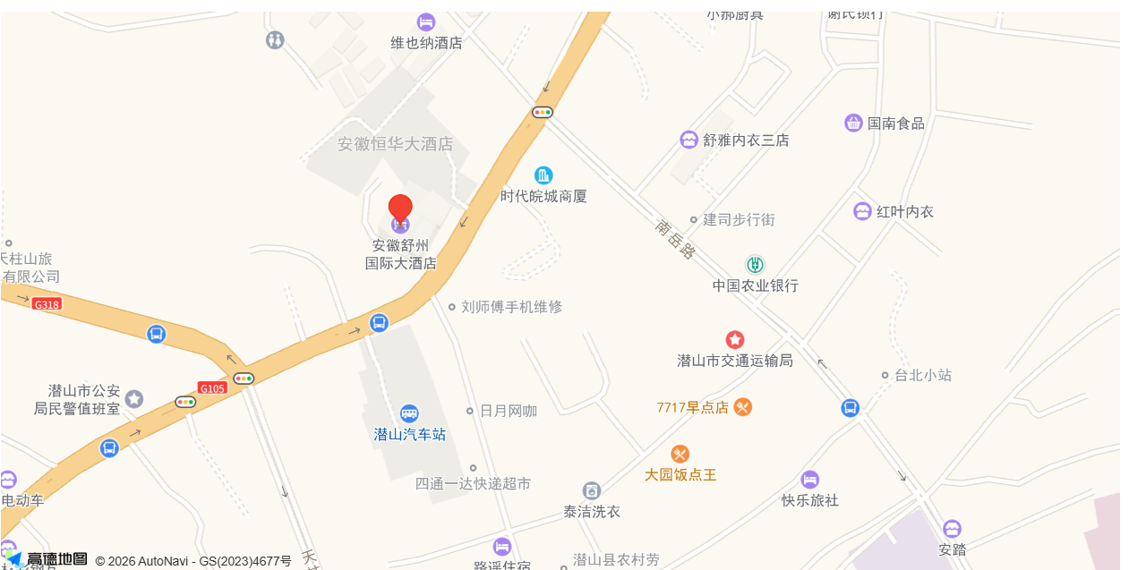 酒店攻略: 潛山舒州國際大酒店由安徽省海豪酒店工程管理咨詢有限公司管理,由潛山市大地房地產(chǎn)開發(fā)有限公司按四星級酒店標準投資興建。 酒店共有客房173間,坐落于國家級重點風(fēng)景名勝區(qū)——天柱山簏,潛山縣城商業(yè)文化中心舒州西路,作為區(qū)域內(nèi)新建酒店品牌,已成為當?shù)禺斨疅o愧新地標。酒店用心打造客房裝飾及全景窗, 5層舒適的宴會餐廳及15個各類宴會包廂,可以同時容納500人就餐。您也可以在酒店的最高點縱覽潛山美景,將天柱山及潛山縣城天際線盡收眼底。酒店兩個大型宴會廳及各類型會議室分別詮釋中式設(shè)計風(fēng)格的精髓。而舒州國際大酒店內(nèi)的休閑吧及康體中心和樓下高檔完善的商業(yè)中心及周邊商業(yè)街,更讓賓客們可以暇步之余,尊享愜意。