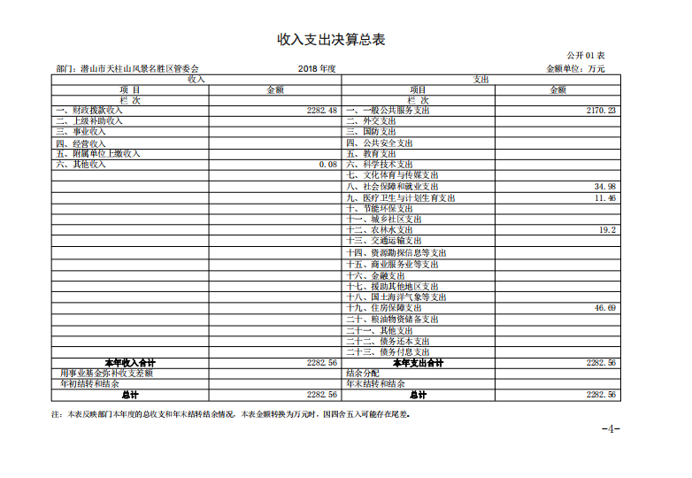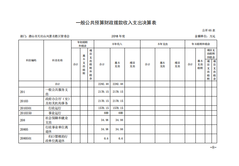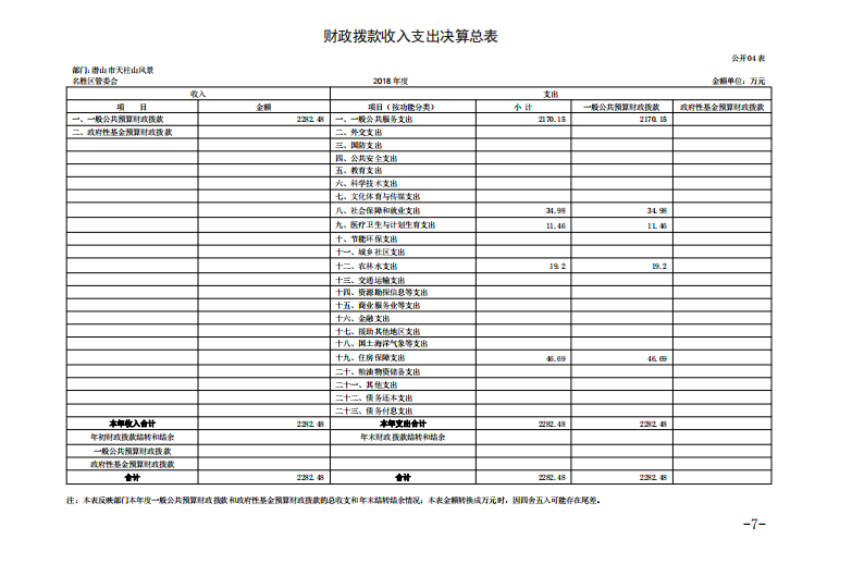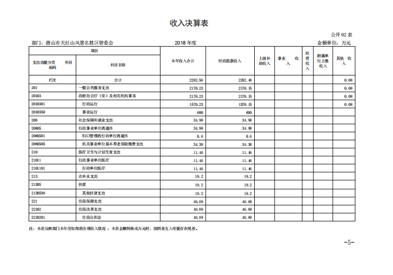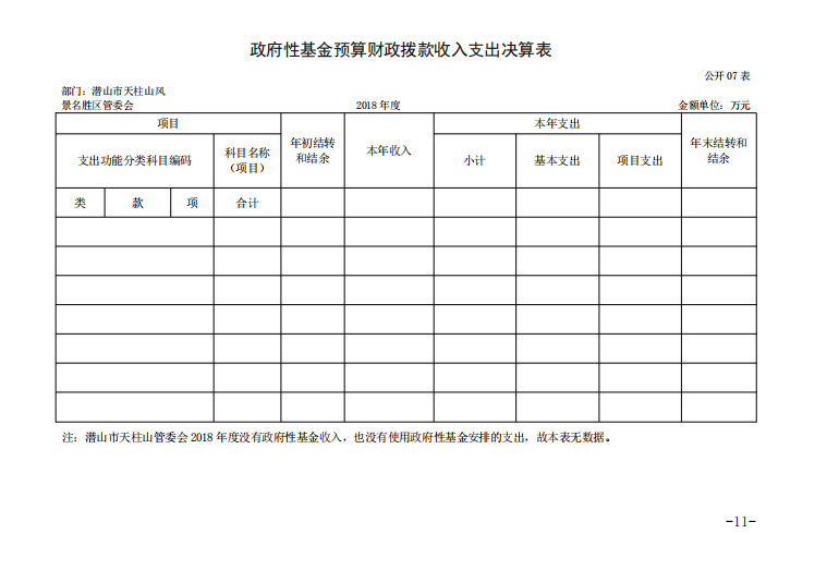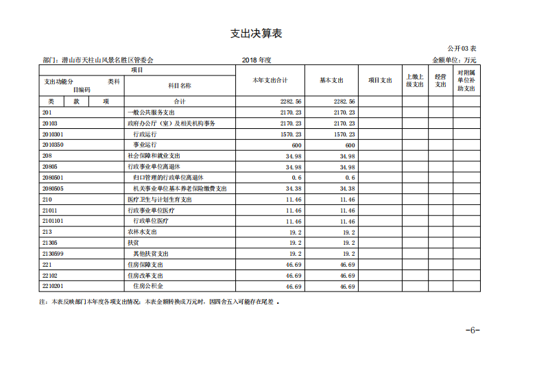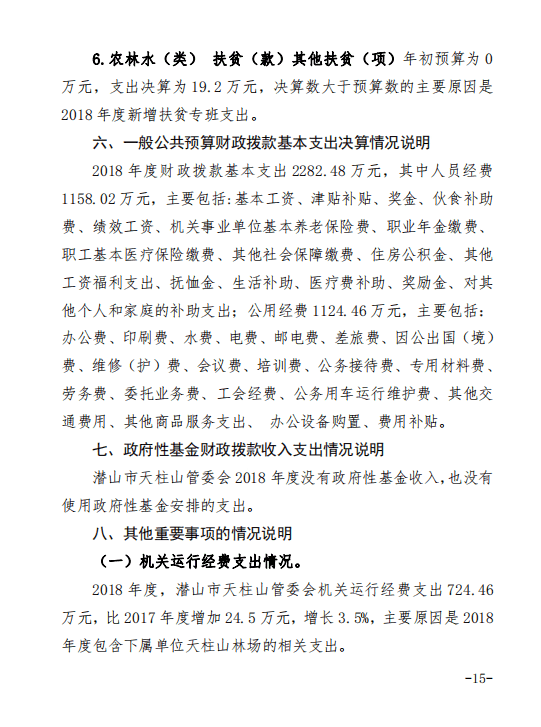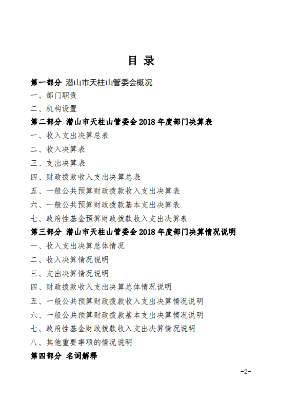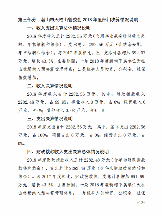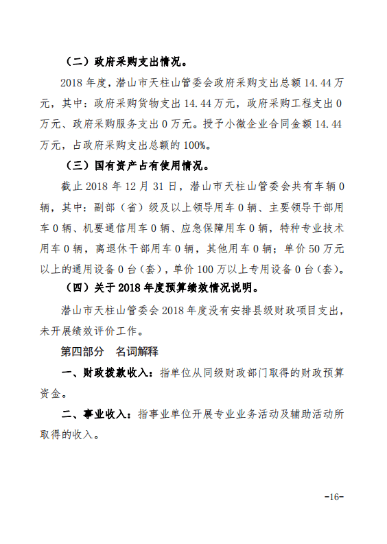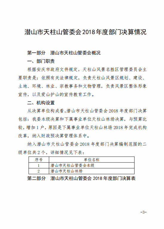 潛山市天柱山管委會(huì)2018年度部門決算
