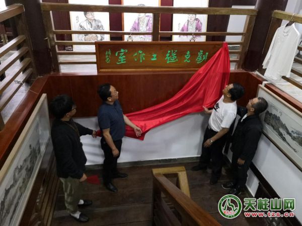 最后,在全體嘉賓的共同見證下,市委常委、天柱山管委會(huì)副主任涂高生、潛山市文聯(lián)主席韓久安、著名畫家劉克強(qiáng)、天柱山書畫院執(zhí)行院長何承熙共同為“劉克強(qiáng)工作室”揭牌。