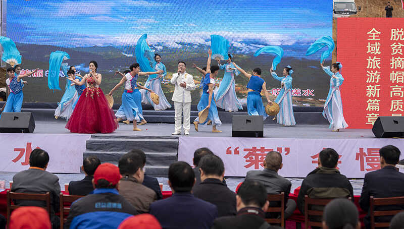 ? ? 開幕式由中共槎水鎮(zhèn)委員會(huì)、槎水鎮(zhèn)人民政府,潛山市文化委、市市監(jiān)局、市扶貧辦、市旅發(fā)委主辦?!队质且荒昃栈ㄏ恪?、《美麗槎水 我的故鄉(xiāng)》、《雛菊花》、《 物華天寶 》等歌、舞、情景劇充分展現(xiàn)槎水鄉(xiāng)村生活風(fēng)情、自然與文化魅力、山區(qū)群眾奮斗在新時(shí)代以及經(jīng)濟(jì)發(fā)展成就。一個(gè)又一個(gè)接地氣的節(jié)目,讓觀眾們看了十分過癮,掌聲不斷。