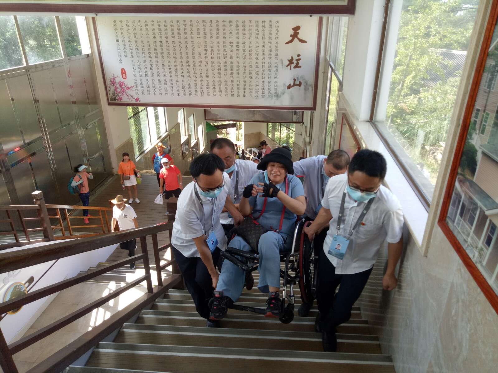 “天柱山很美,景區(qū)服務(wù)很周到,為索道工作人員的貼心服務(wù)點(diǎn)贊”。8月16日,天柱山風(fēng)景區(qū)迎來了一批特殊的游客,為了讓這批殘疾人士一睹天柱山的美麗風(fēng)景,大龍窩索道和執(zhí)法大隊(duì)一中隊(duì)及時(shí)抽調(diào)黨員骨干,組成10余人的愛心志愿者分隊(duì),全程陪同一對一的為他們貼心服務(wù),志愿者們采取了背、抱、扶的辦法,為殘疾人士實(shí)現(xiàn)了無障礙通行,檢票口開通了綠色檢票通道,站臺(tái)服務(wù)細(xì)致入微,使得這批特殊的游客感受到了來自景區(qū)的溫暖,圓了他們的登山夢,大龍窩索道正在用實(shí)際行動(dòng)踐行著“大愛天柱,情系天下”的服務(wù)宗旨。(文圖/李平)