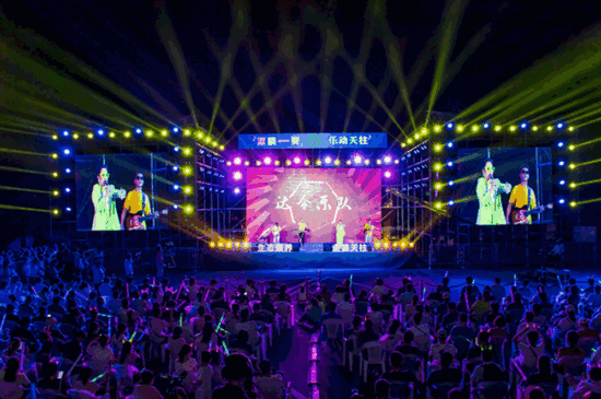 喬樂(lè)隊(duì)、達(dá)令樂(lè)隊(duì)、摩登樂(lè)隊(duì)……安徽知名樂(lè)隊(duì)相繼登場(chǎng),將搖滾、流行、民俗、電音等多種音樂(lè)風(fēng)格一一呈現(xiàn),滿足了不同聽(tīng)眾的欣賞喜好。當(dāng)激情動(dòng)感的音樂(lè)從耳邊流過(guò),一首首耳熟能詳?shù)男?#xff0c;引發(fā)千人合唱。“時(shí)尚絢麗的魔幻燈光秀,氣勢(shì)恢宏的千人廣場(chǎng),浪漫唯美的夏夜星河,能在這里聽(tīng)到自己喜歡的音樂(lè),真是太享受了?!睆暮戏授s來(lái)參加天柱山星空音樂(lè)節(jié)的游客激動(dòng)地說(shuō)?!?/p>