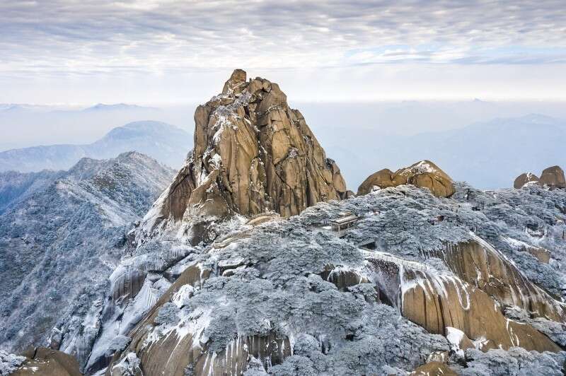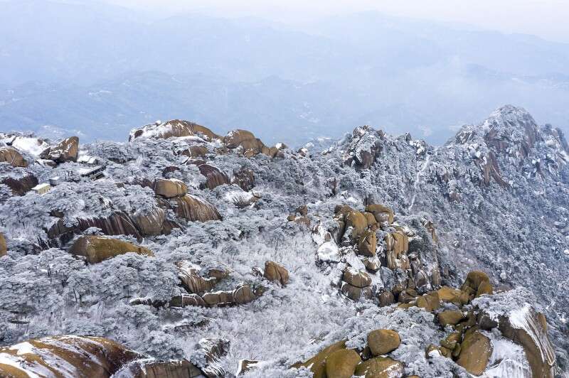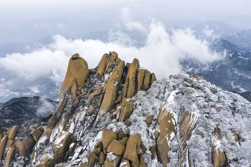 受冷空氣影響,2020年12月14號,安徽潛山天柱山迎來降雪,漫山遍野,銀裝素裹,宛如冰雪夢幻世界。
