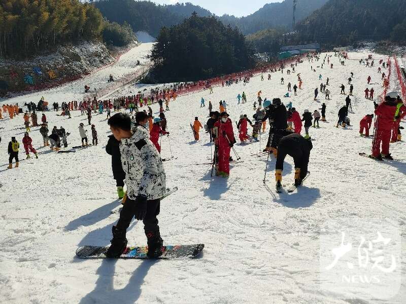 據(jù)天柱山滑雪場負責人張斌介紹,連日來,來天柱山滑雪的游客均超過千人之上。