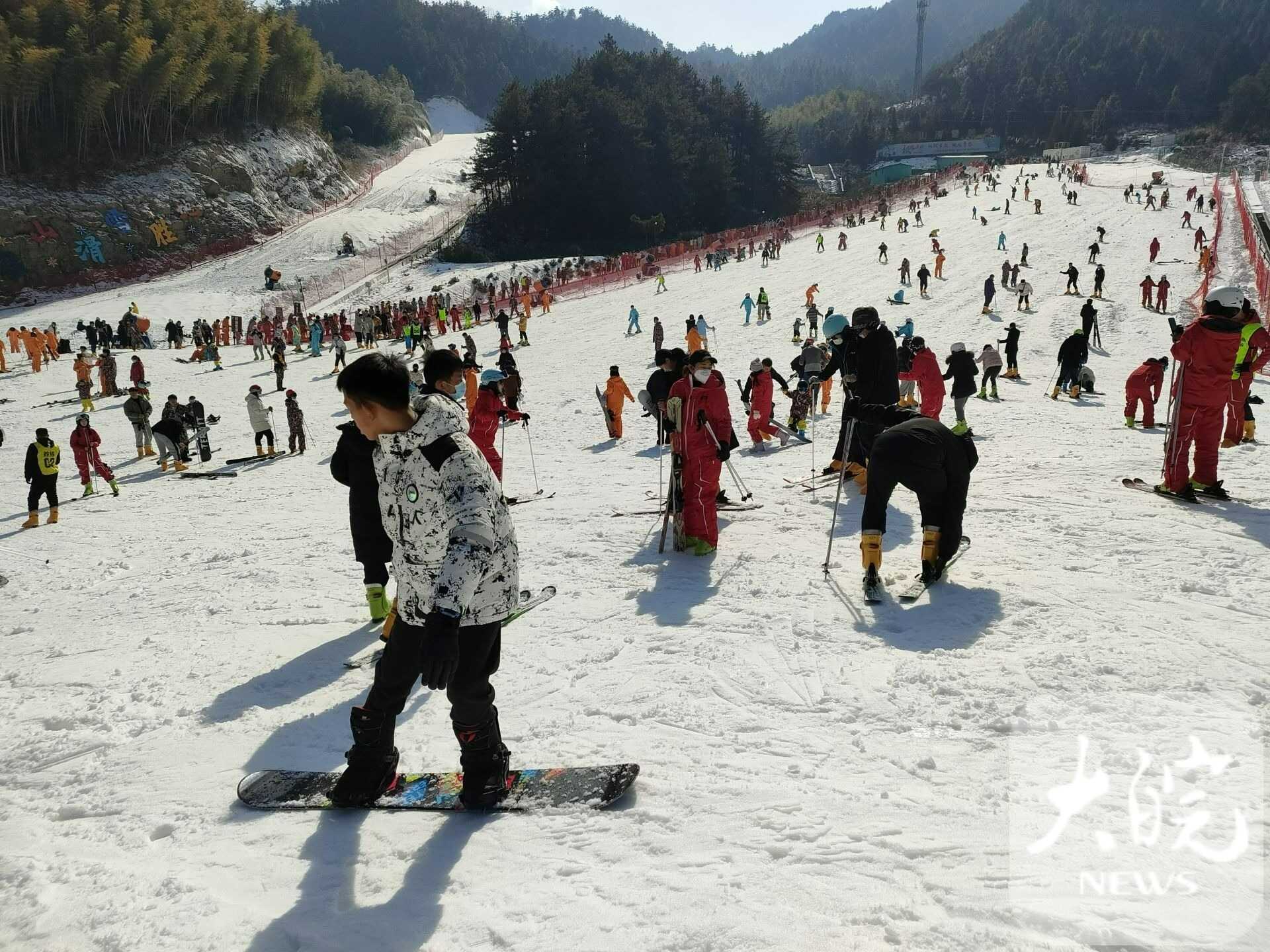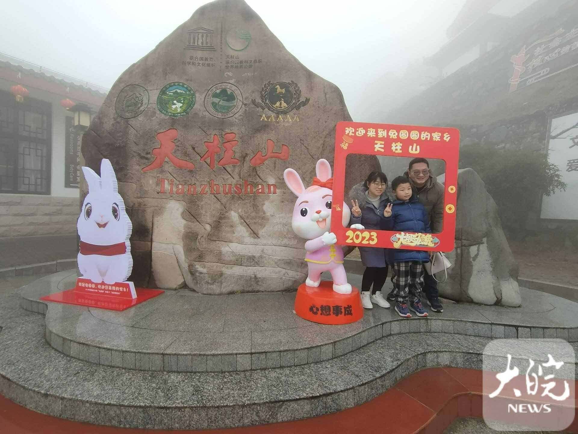 春節(jié)假期,天柱山風(fēng)景美,年味濃,景區(qū)在馬祖、茶莊游客中心、天池峰等多處設(shè)有歡慶新年的“兔圓圓”卡通形象,游客在這里拍照,許下美好愿望。“今年春節(jié)帶著家人在天柱山旅游過年,提前在網(wǎng)上預(yù)訂好民宿,一家人開心快樂地體驗山岳風(fēng)情,吃農(nóng)家菜、看民俗、滑冰雪、賞美景,體驗“慢生活”,在“兔圓圓”故鄉(xiāng)過兔年,意義非凡?!眮碜陨虾5挠嘞壬_心地說。
